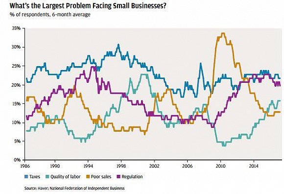 信中援引一些估算數(shù)據(jù)稱,美國聯(lián)邦政府每年監(jiān)管方面的費用約為2萬億美元。調(diào)查顯示,目前小企業(yè)面臨的最大問題一是稅收二是監(jiān)管。以下截圖來自上述股東信。