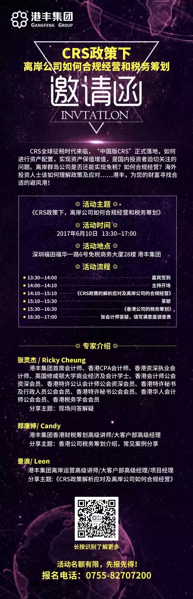 總而言之,中國版CRS的實施對于想通過各種白手套洗錢轉移資產(chǎn)的人或者投資海外市場時沒有報過稅的人來說,以后恐怕會很難了。那么,在CRS政策下,離岸公司如何報稅?海外資產(chǎn)如何保值?港豐特邀專家,為您的事業(yè)保駕護航!